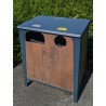 Objet : Bac de tri avec 2 compartiments de 45 litres. Consignes de tri sur le couvercle et usinage des trappes.