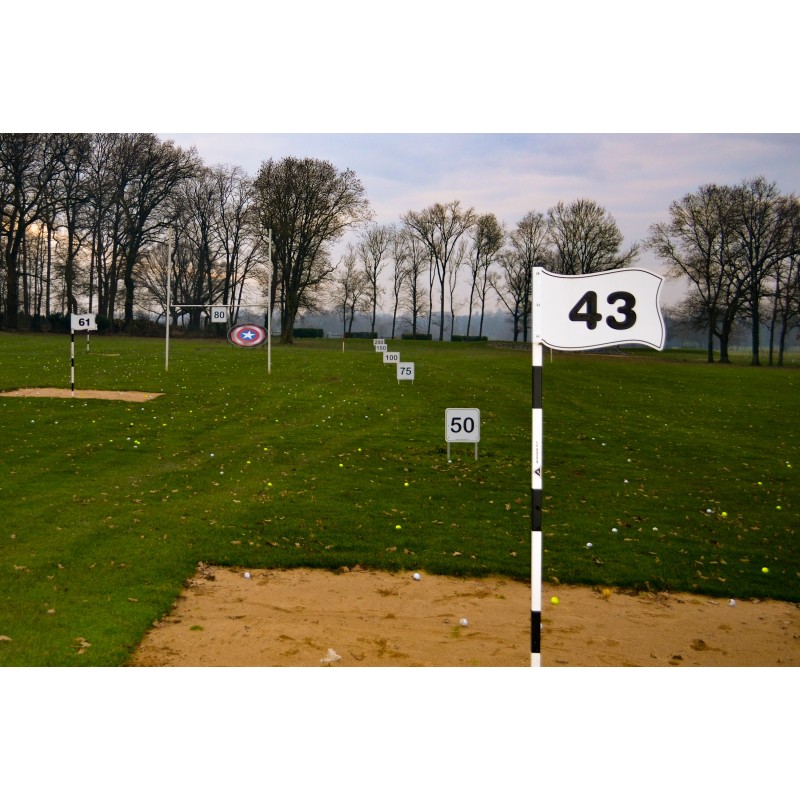 Objet : Cible de practice en forme de Drapeau de golf bicolore gravée(2 ou 3 chiffres). Résistance extrême.