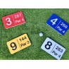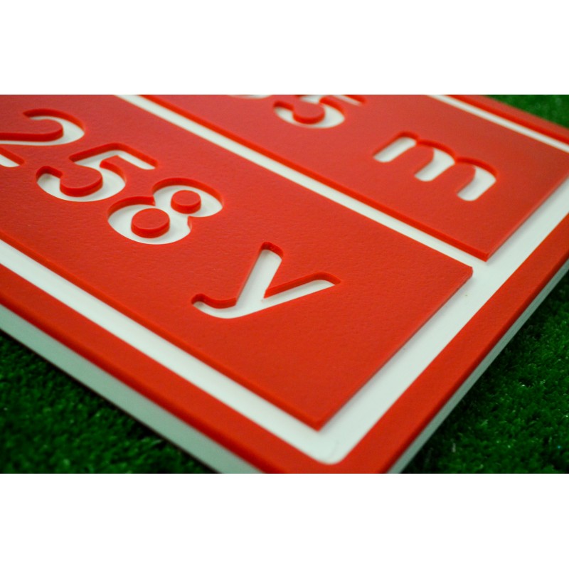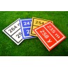 Objet : Objet : Marque au sol avec gravure complexe, RONDE ou CARREE. Résistance extrême. Fabrication : Plastique multicouche teinté dans la masse. Format : L 290 x Ht. 290 x ép. 15 mm Finition : Brut d'usinage, chanfrein. Ancrages de fixation au sol inclus. .Options : Format, finition, fixation, résine avec logo.. Couleur : Blanc-noir / Jaune-noir / Bleu-blanc / Rouge-blanc (à définir à la commande)