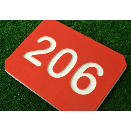 Objet : Marque au sol avec gravure de 2 à 3 caractères, RONDE ou CARREE. Résistance extrême. Fabrication : Plastique multicouche teinté dans la masse. Format : L 290 x Ht. 290 x ép. 15 mm Finition : Brut d'usinage, chanfrein. Ancrages de fixation au sol inclus. Couleur : Blanc-noir / Jaune-noir / Bleu-blanc / Rouge-blanc (à définir à la commande) Options : Format, finition, fixation, résine avec logo