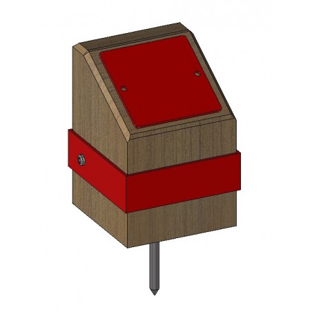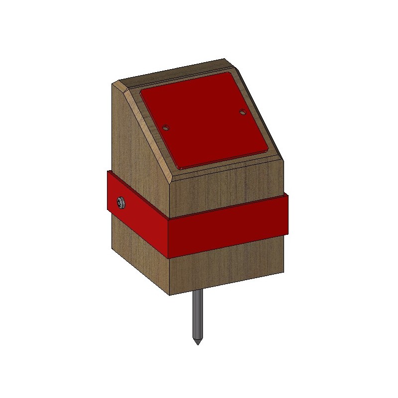 Objet : Marque de départ personnalisable en cube avec coupe de biais.Fabrication : Robinier massif (classe 4 naturel), adhésif en résine coulée, pointe métallique spéciale. Format : Ht. 120 x L75 x l.75 mm Finition : poncé, saturateur monocouche déperlant.Options : Format, finition, 2ème pointe.