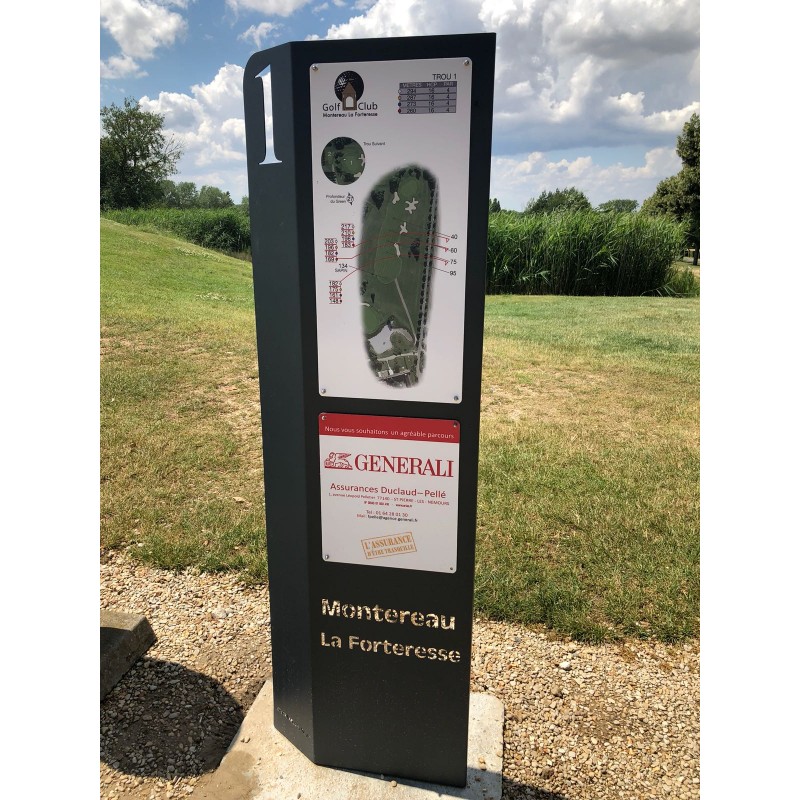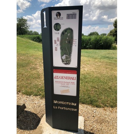 Signalétique : Plan du trou L 26 x h 55 cm. (ALC) Alucomposite avec lamination anti-UV ou (INC) Inclusion sur compact.