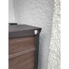 Options : Coloris et décors, Volume, plaque personnalisable en façade. Équerres pour ancrage au sol