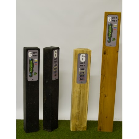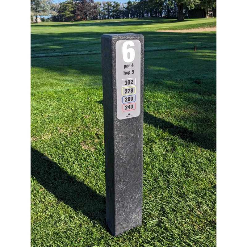 Objet : Panneau de parcours épuré réalisé en composite recyclé noir avec ancrage à visser ou planter au sol (selon besoin).
