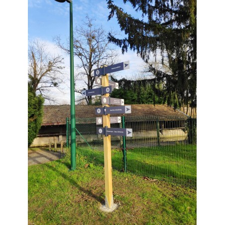Objet : Mât de fléchage multidirectionnel avec poteau carré en Bois massif (ou plastique recyclé).