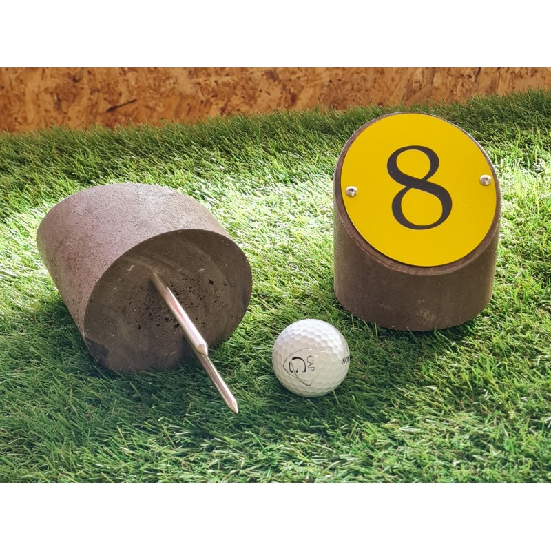 Objet : Marque de départ robuste et durable. Visuel : plaque composite gravable de couleur. 2 Pointes d’ancrage en inox.