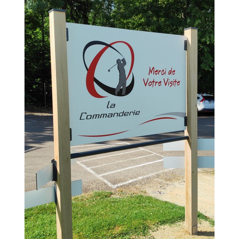 Signalétique : format utile l.1200 x Ht 1000 mm. Impression quadri sur vinyle polymère avec lamination anti UV mat garantie 5 ans en extérieur. Contrecollage sur Alucomposite 6 mm.