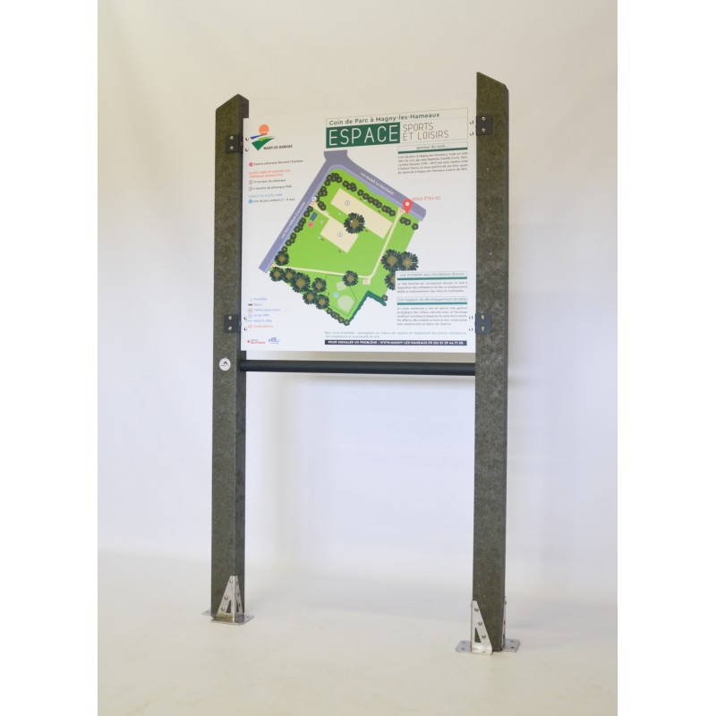 Format : L. 950 x Ht 2500 mm (variations possibles) en version Totem / L. 1400 x Ht 2000 mm en version panneau général.