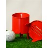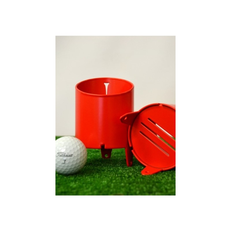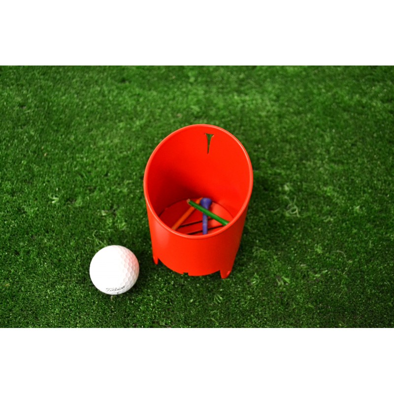 Objet : Corbeille pour les Tee cassés ronde, moderne et résistante à la rouille.Full stainless steel Round Broken Tee caddy. Modern and rust free.Fabrication : Inox avec peinture époxy fine texture.Format : diam 80 mm x Ht 127.5 mm