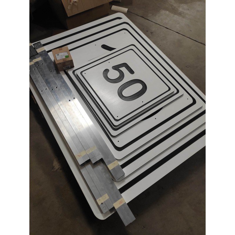 Fabrication : Plastique multicouche teinté dans la masse, support alu ou galva.Format progressif : 500x500, 600x600, 720x960, 864x1152, 1036x1382 Gravure à définir : 50 / 75 / 100 / 150 / 200Couleur : Couleur : Blanc-noir / Jaune-noir / Bleu-blanc / Rouge-blanc / Vert-blanc / Orange-noir / Violet-blanc / Noir-blanc / gris-noir (à définir à la commande)Options : Format, finition, fixation, gravure logo...