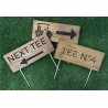 Objet : Panneau signalétique d'aspect naturel à piquer au sol. Il est amovible et pratique.