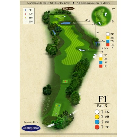Modélisation des 18 trous de votre parcours en 3D avec distances intermédiaires.