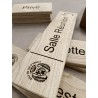 Fabrication : Réalisé en bois massif (Robinier, Châtaignier ou Douglas) et gravure laser.