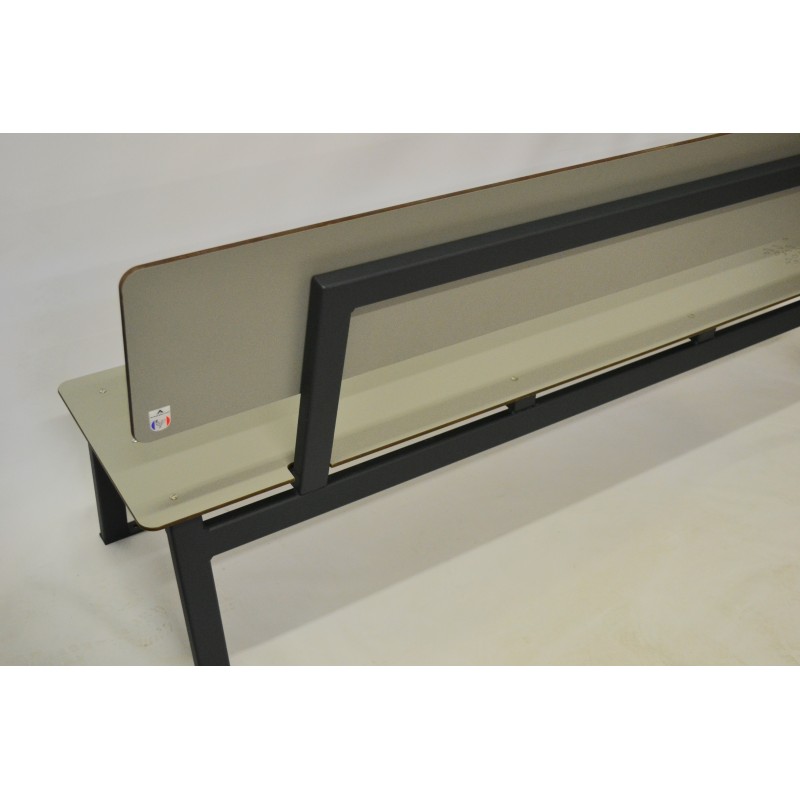Assise et dossier en compact HPL Gris clair (décor bois sur demande en supplément).