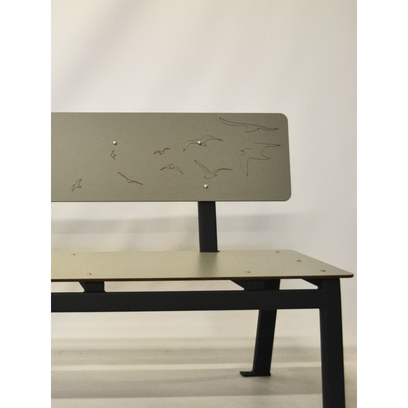 Objet : Banc contemporain, épuré avec dossier. Il demande peu d'entretien et s'adapte à tous les styles. Il est personnalisable par gravure.