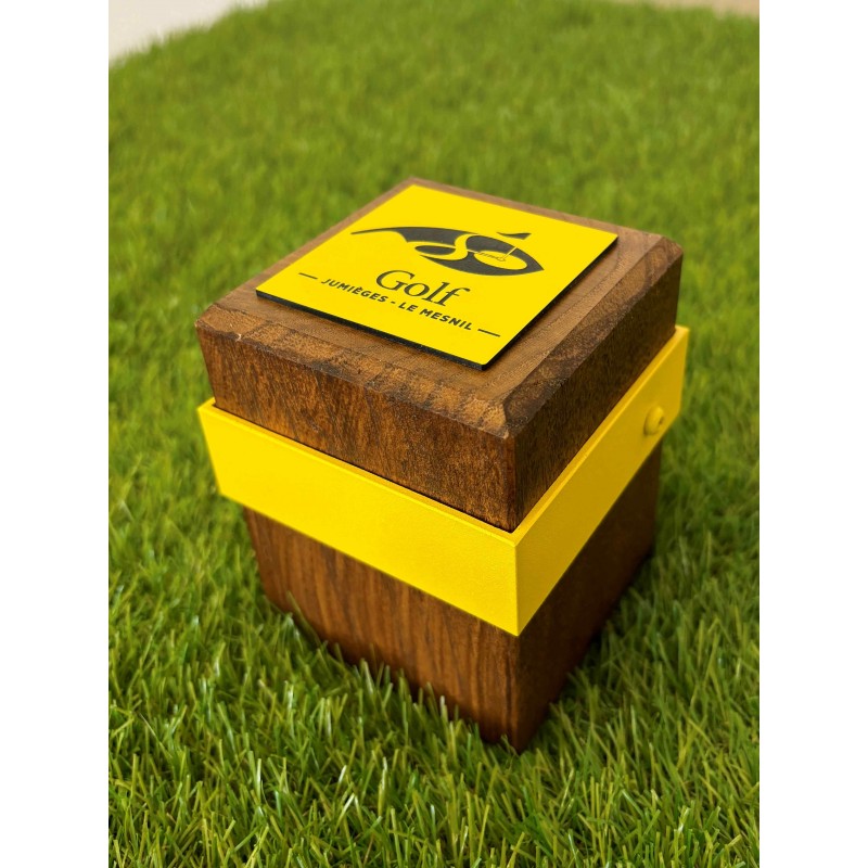 Objet : marque de départ au look classique et contemporain qui allie la durabilité d'un cerclage en aluminium et d'un bois massif naturel.