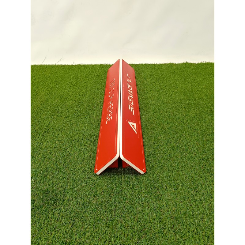 Objet : Séparateur de practice incliné à poser au sol avec message intégré en gravure.