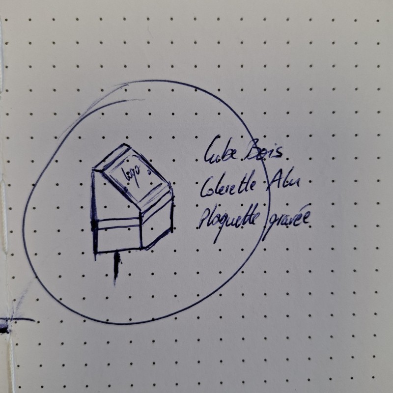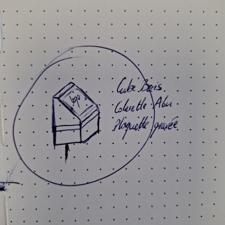 Objet : Un Tee marker qui allie bois massif, aluminium et plaque gravée.
