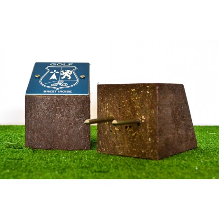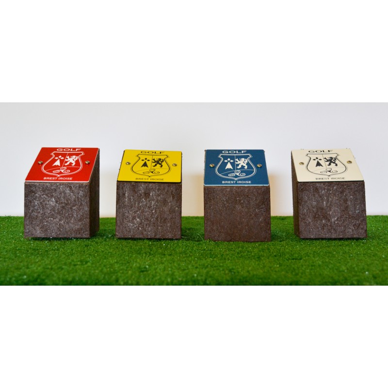 Objet : Marque de départ personnalisable en cube avec coupe de biais et visuel logo ou autre en gravure dans la masse.