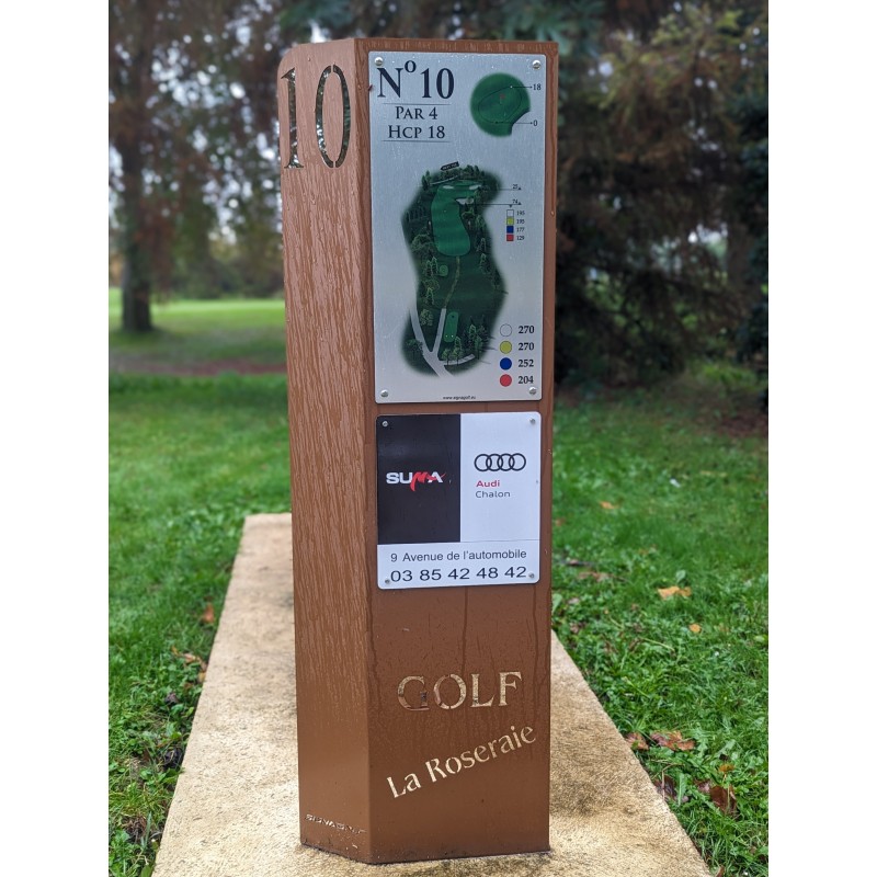 Sa visibilité est bonne grâce à un visuel de trou imprimé en quadri et facilement remplaçable dans le temps si besoin.
