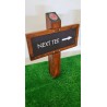 Objet : Fléchage ou panneau d'information entièrement personnalisable. Un alliage de classicisme et de modernité.3 ancrages de fixation au sol inclus.Fabrication : poteau et 3 plis Douglas plaque alucomposite encastrée.