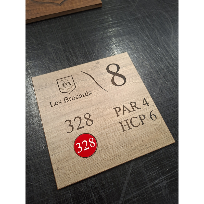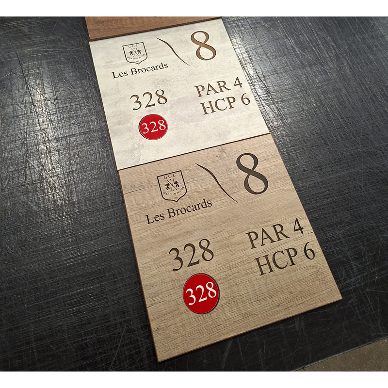 Objet : Plaque de départ avec décor spécifique en Compact HPL gravé.