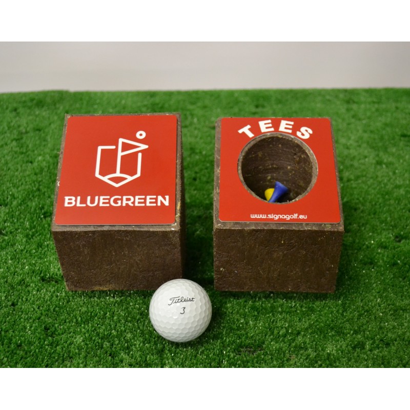 Objet : Achetez un Pack DUO, plutôt que 2 marques de départ + une corbeille à tee.Nous avons conçu des produits qui vont par paire sans sacrifier la possibilité de personnaliser la marque de départ avec votre logo.Disponible en rond ou en carré elles sont conçues en plastique recyclé pour en limiter l'entretien.Montage sur 2 pointes en InoxTarif valable à partir de 20 paires.Il faut 40 paires pour équiper un parcours 18 trous (avec un peu de stock tampon).Options : hauteur, message personnalisé en gravure