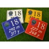Objet : Marque au sol RONDE, CARREE, RECTANGLE avec gravure et incrustation de pastilles de couleur gravées pour matérialiser les repères de distance de votre parcours ou représenter votre logo.